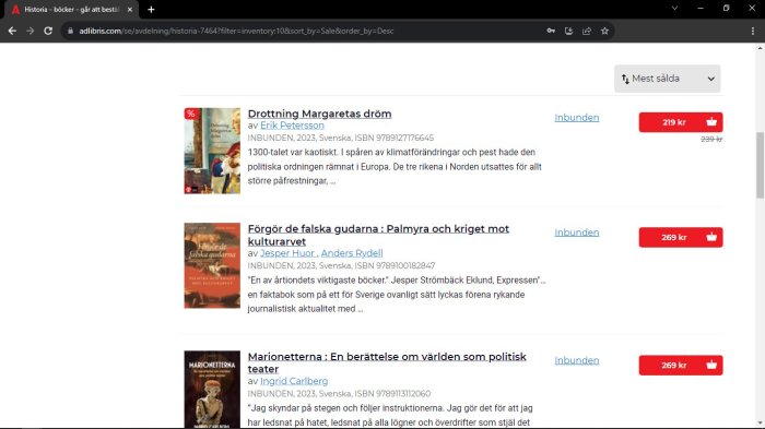 We’re pleasantly surprised to see Queen Margaret’s Dream as the Number 1 Bestseller in the History Category on Sweden’s largest online bookstore, Adlibris, during the last week of September.